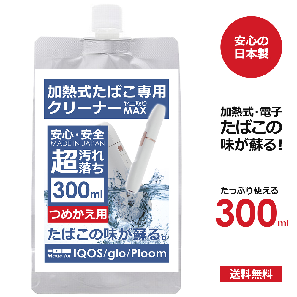 アイコス クリーナー 掃除 綿棒無し スティックなし 加熱式タバコ 電子タバコ 汚れ落とし ヤニ取りMAX 300ml 大容量 詰め替え用 日本製