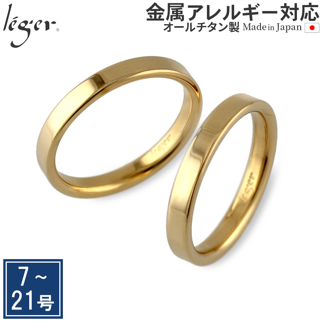 ペアリング 結婚指輪 チタン IPゴールド 平打ち 3mm幅 名入れ可能 マリッジリング メンズ レディース 日本製 金属アレルギー対応 U12GLpair レジエ レジェ leger