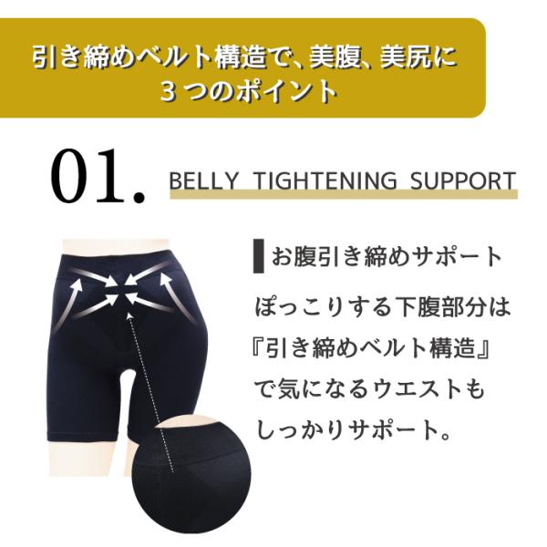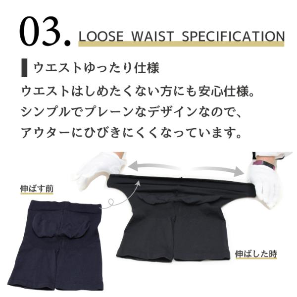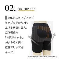 | 特長 | ・下腹を押さえて骨盤周りは内側に引き締める骨盤サポート設計 ・お尻はポケットの立体仕様で、きれいな形をキープ ・インナーに履きやすい3分丈 ・ウエストは適度な締め付け感を保ちつつ、ゆったり伸びるFreeFit設計。 ・抗菌防臭加工 ・静電気防止加工 ・吸汗加工 ・レッグスキンケア加工 (シアバター・スクワラン・オリーブオイル・シルクアミノ酸を配合) |