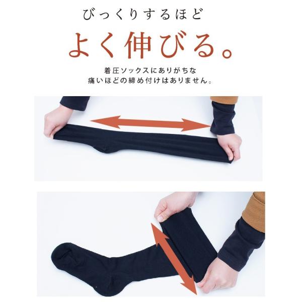 通常の着圧ソックスに比べて、履き口周りを大きく設計してゆったり履いていただけるようになっています。