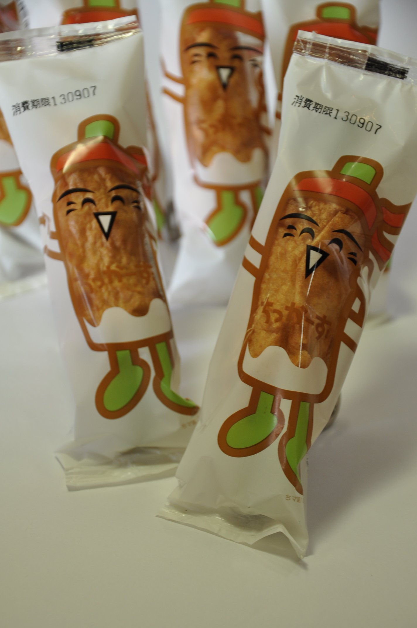 小松島名産の竹ちくわです。徳島県のゆるキャラ「ちっかーず」を使って、かわいくパッケージしました