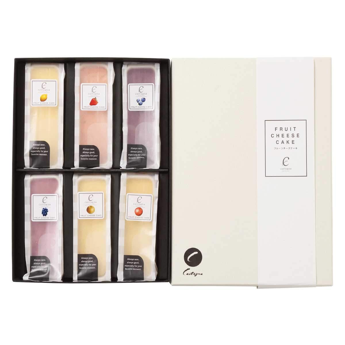 東広島市のイタリアン・レストランから始まった「カスターニャ」が贈る本格スイーツ。広島県産のフルーツをふんだんに使用した一口サイズのフルーティなチーズケーキセットです。広島県産のレモン、高野のりんご、大崎上島のブルーベリー、世羅の梨、三次のピオーネ、庄原のいちごを使用。これらのフルーツと特選チーズをブレンドし、ていねい焼き上げました。広島県の豊かな「実り」が、それぞれ詰まった絶品スイーツを、ぜひお召し上がりください。お土産やご贈答品としてもオススメです。 【原材料】■レモン:ホイップクリーム、ナチュラルチーズ、砂糖、卵