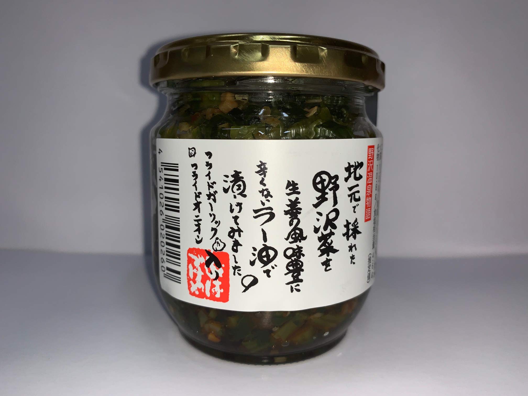 野沢温泉村で採れた野沢菜を生姜の風味豊かに、辛くない食べるラー油風に仕上げました。フライドカーリック、フライドオニオン入り。賞味期限は製造より1年間です。