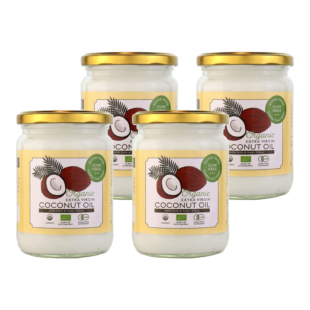 ココナッツオイル 500ml 4個 有機JAS オーガニック エキストラバージン 中鎖脂肪酸 コールドプレス 低温圧搾方 無添加 無精製 無保存料 無