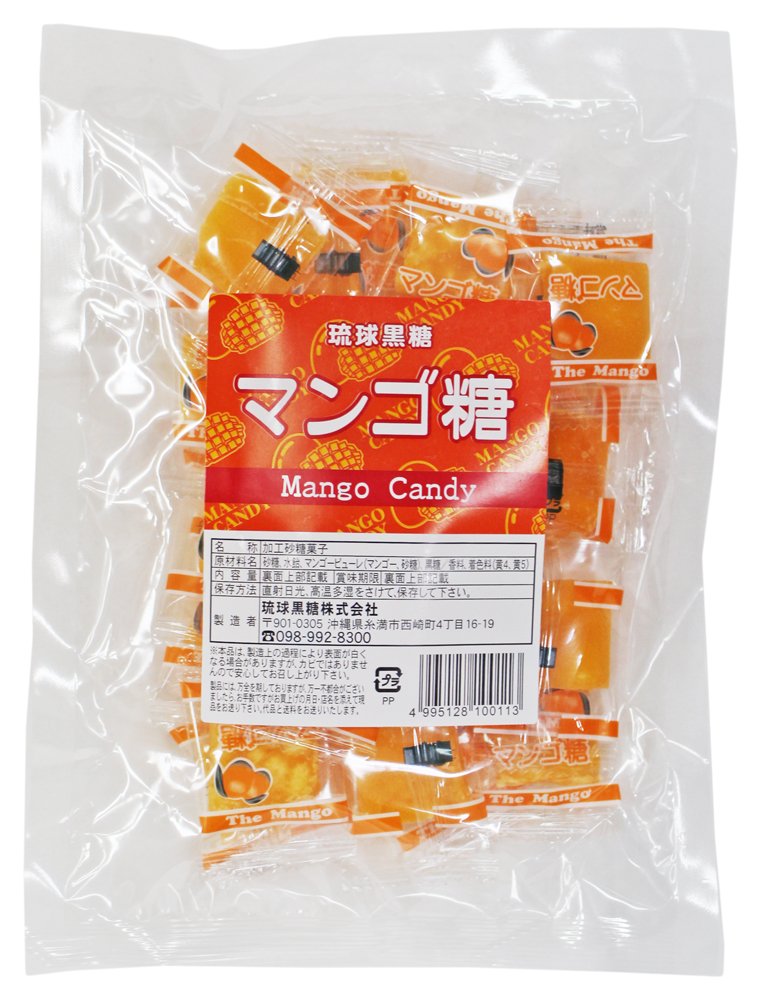 原材料:砂糖、水飴、マンゴーピューレ(マンゴー、砂糖)、黒糖/香料、着色料(黄4、黄5)