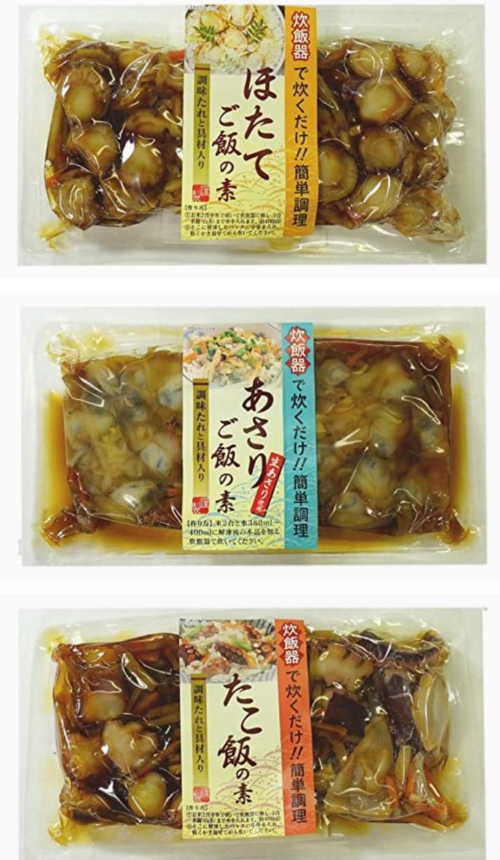 商品名:海鮮炊き込みご飯の素 ほたて、あさり、たこ炊込みご飯 味比べ3点セット《冷凍》