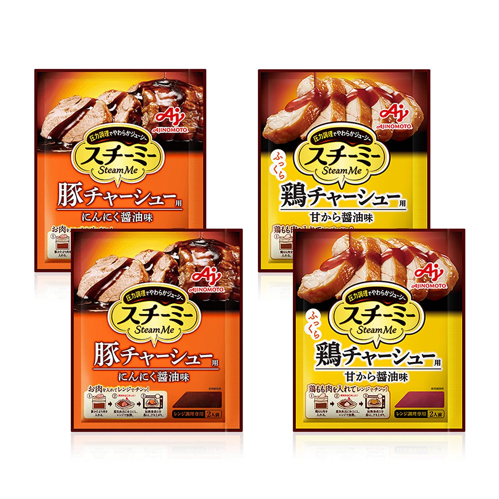 味の素KK スチーミー 豚チャーシュー用にんにく醤油味、鶏チャーシュー用甘から醤油味 【2種アソート】 各2個セット