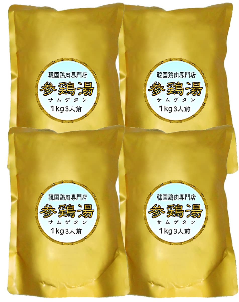 1キログラム入り4個セット●一切の保存料無添加、調味料は塩のみ、ごく薄味仕上げ●原材料・鶏肉(韓国産)・もち米・うるち米・高麗人参・ニンニク栗・ナツメ・塩●サムゲタン(参鶏湯)は、韓国の代表的な料理です。若鶏もしくは丸ごとの鶏の腹を割いて中に食材を詰め合わせ長時間煮込み、煮込みに用いた器に入った状態の熱いままで供されます。よく煮込まれて肉がほぐれ匙だけで食べることができるほど、ごく薄い味付けのため別に用意された食塩やキムチ、コチュジャンなどを使って自分で味を整えて食べるスープです。フランス料理のフォン・ド・ヴォーのように、米飯や麺など他の食材を加えて新しいメニューにといった応用の利く基本料理でもあります。●パッケージは時々変わります。写真と違う場合がございます。ご理解ください。