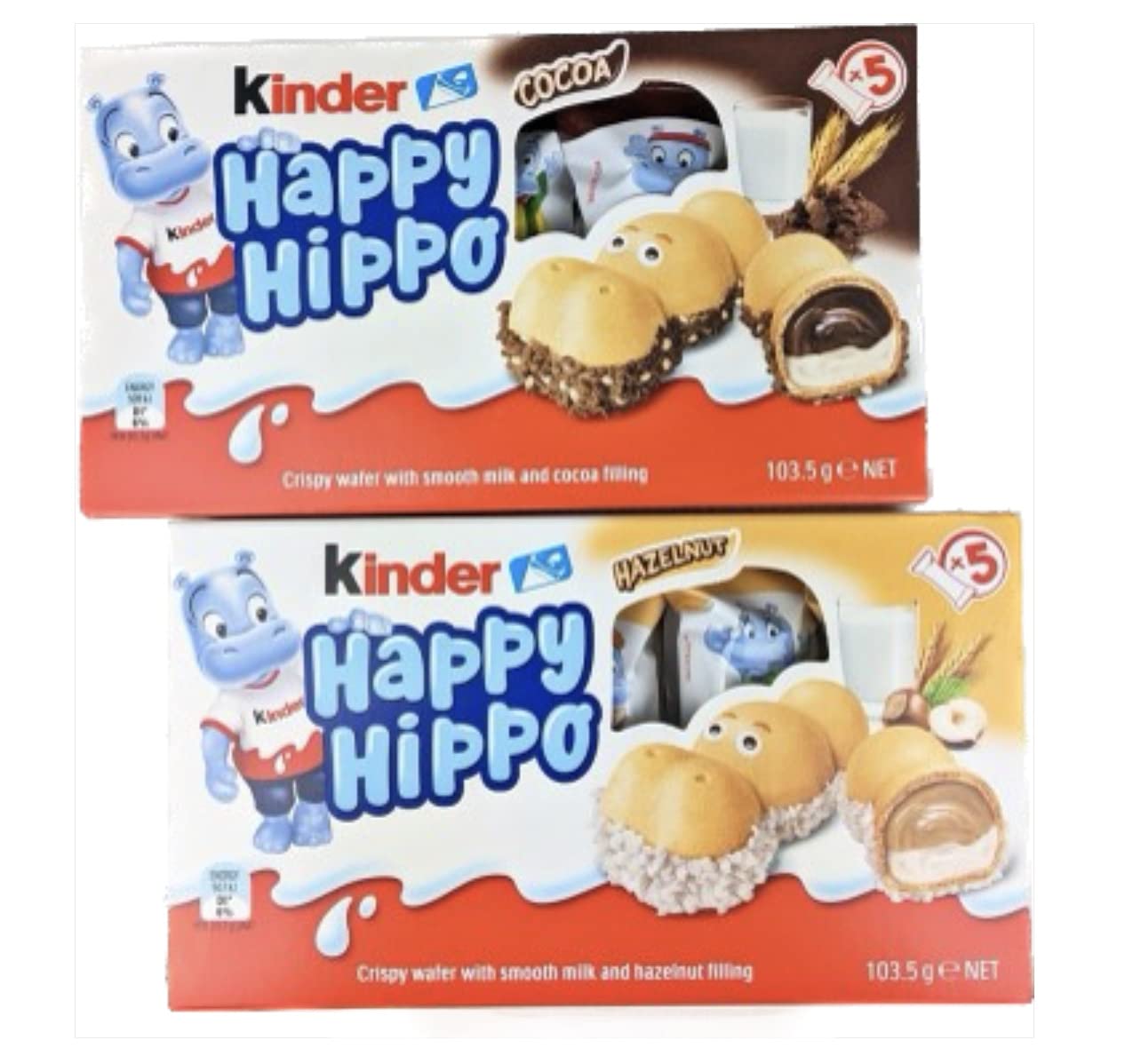 商品名:FERRERO フェレロ Kinder Happy Hippo Cocoa + hazelnut (キンダーハッピーヒッポ オリジナル+ヘーゼルナッツ) 5個入り 2箱