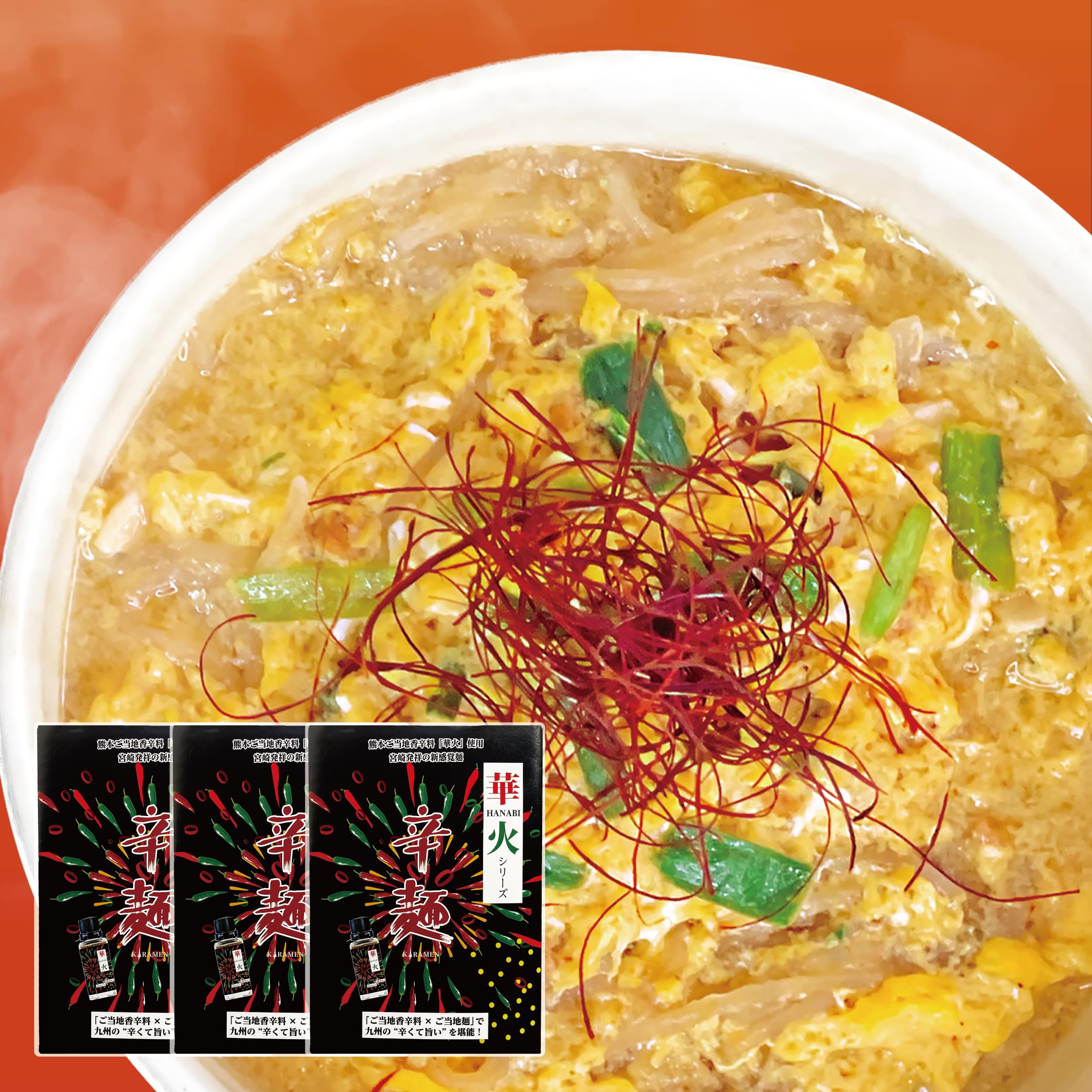 商品名:【3袋セット】からみ 九州唐辛子「華火」使用 辛麺142g(麺80g スープ54g かやく5g 華火0.3g×2)宮崎辛麺 国産 唐辛子 青唐辛子 半生麺 華火 ラーメン (3)