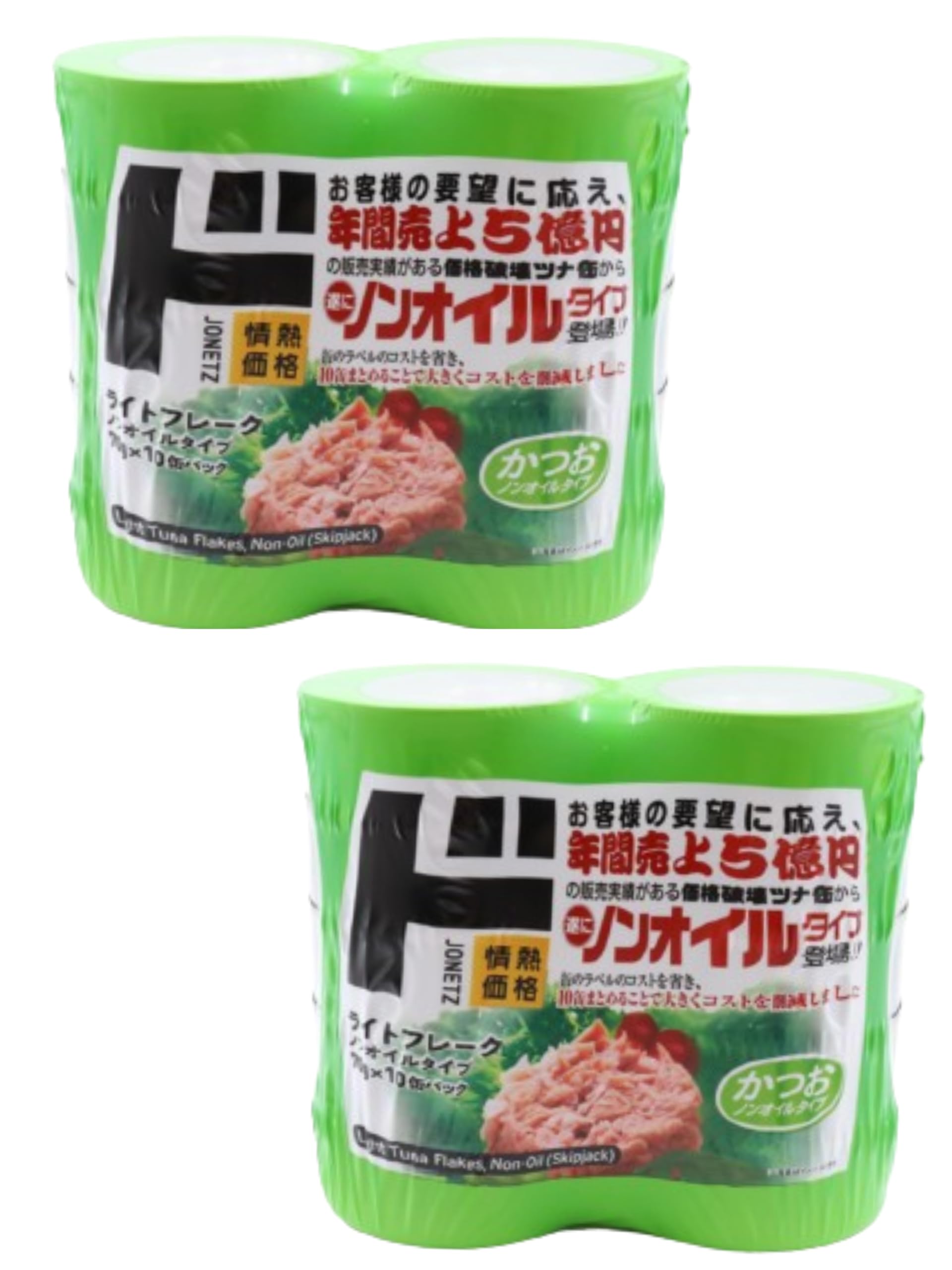 年間売り上げ5億円の販売実績がある価格破壊ツナ缶から、ノンオイルタイプが登場! 缶のラベルのコストを省き、10缶まとめることで大きくコスト削減しました。 かつおノンオイルタイプ。 ■内容量:70g×10缶 ■原材料名:かつお、野菜エキス、食塩、たまねぎ粉末/調味料(アミノ酸) ※本品に含まれているアレルギー物質:大豆 ■原産国:タイ