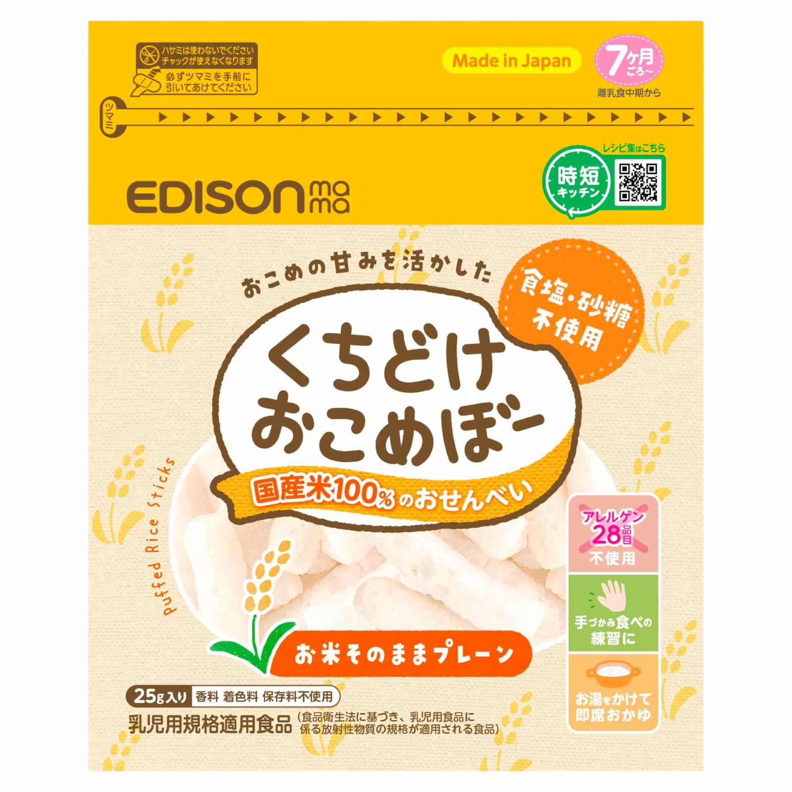 EDISONmama(エジソンママ) くちどけおこめぼー【プレーン】 7か月頃~ 25g 乳児用規格適用食品 特定原材料8品目不使用 食塩砂糖不使用