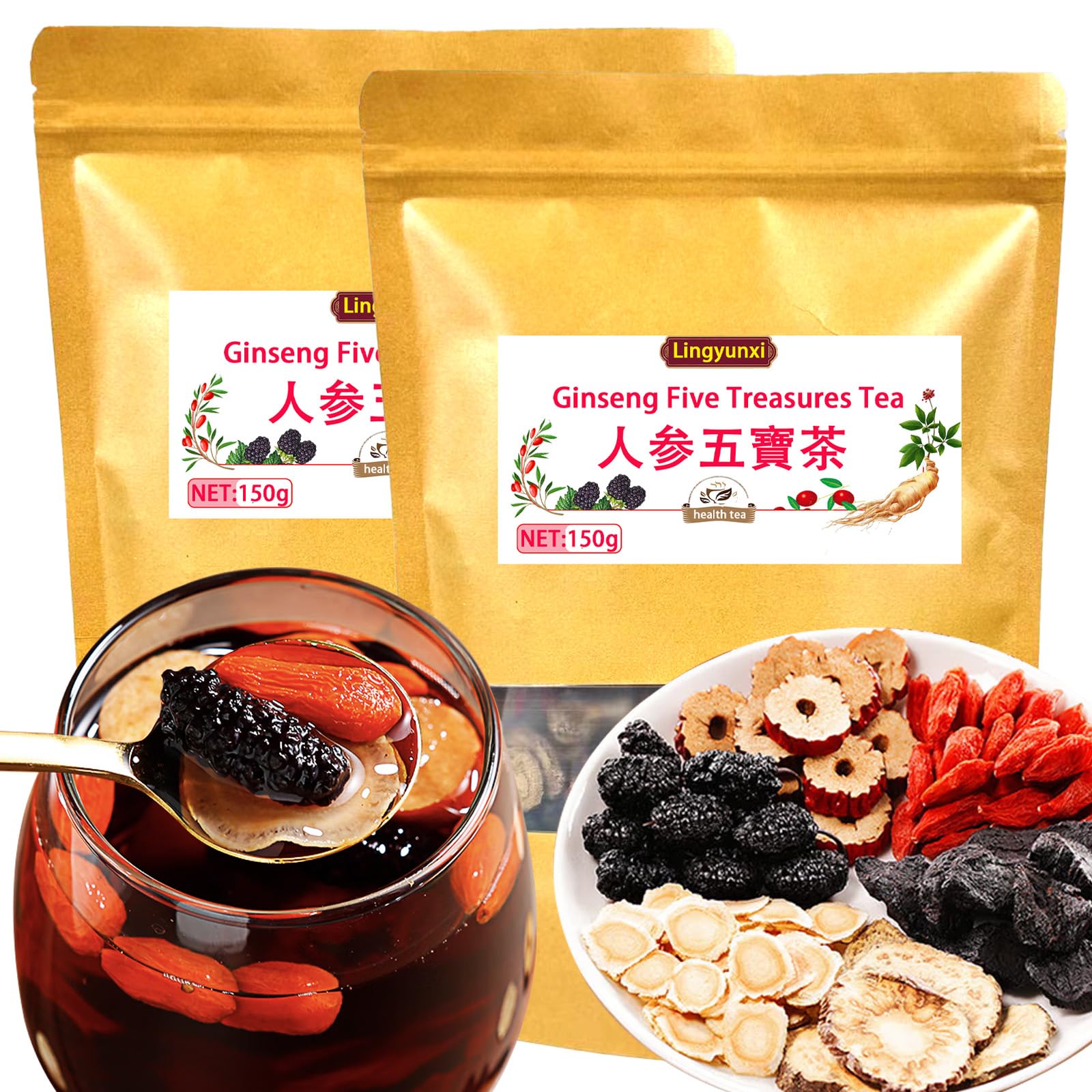 Lingyunxi人参五宝茶2袋セット20パック、毎日1パックで元気いっぱい
