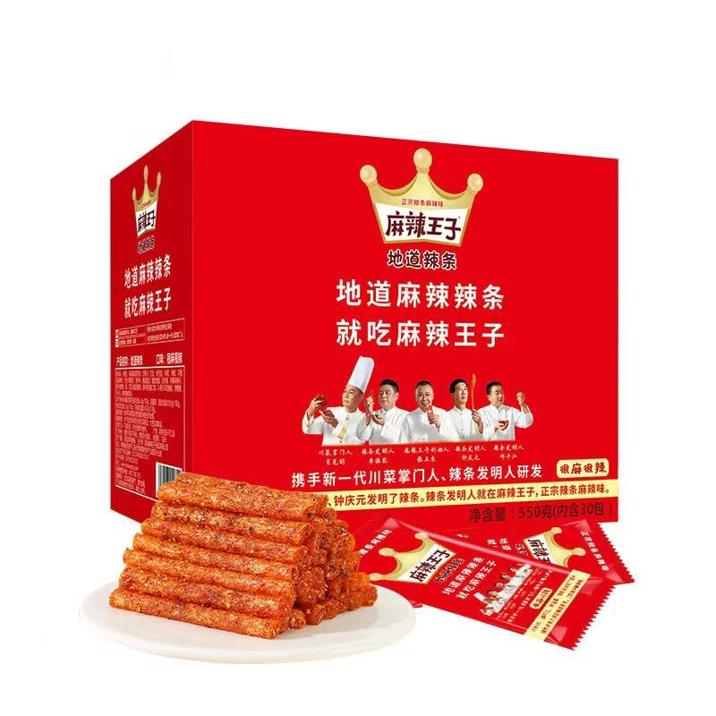 商品名:?道辣条 麻辣王子辣条 ベジタリアン用手引き麺筋 小分け 地元の伝統を守る ラーティアオ 湖南特? 辣条 辛口 間食 中国零食 麻辣休?食品小吃 (18g*30包1箱, とても麻で辛い)