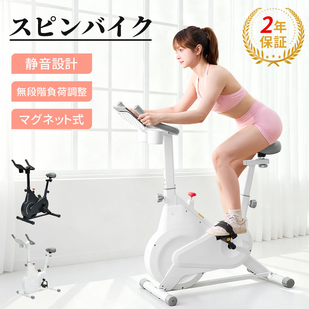 エアロバイク フィットネスバイク スピンバイク マグネット式 静音 家庭用 負荷8段階調整 有酸素運動 筋トレ キャスター付き IPADスタンド付 Bluetooth 2年保証