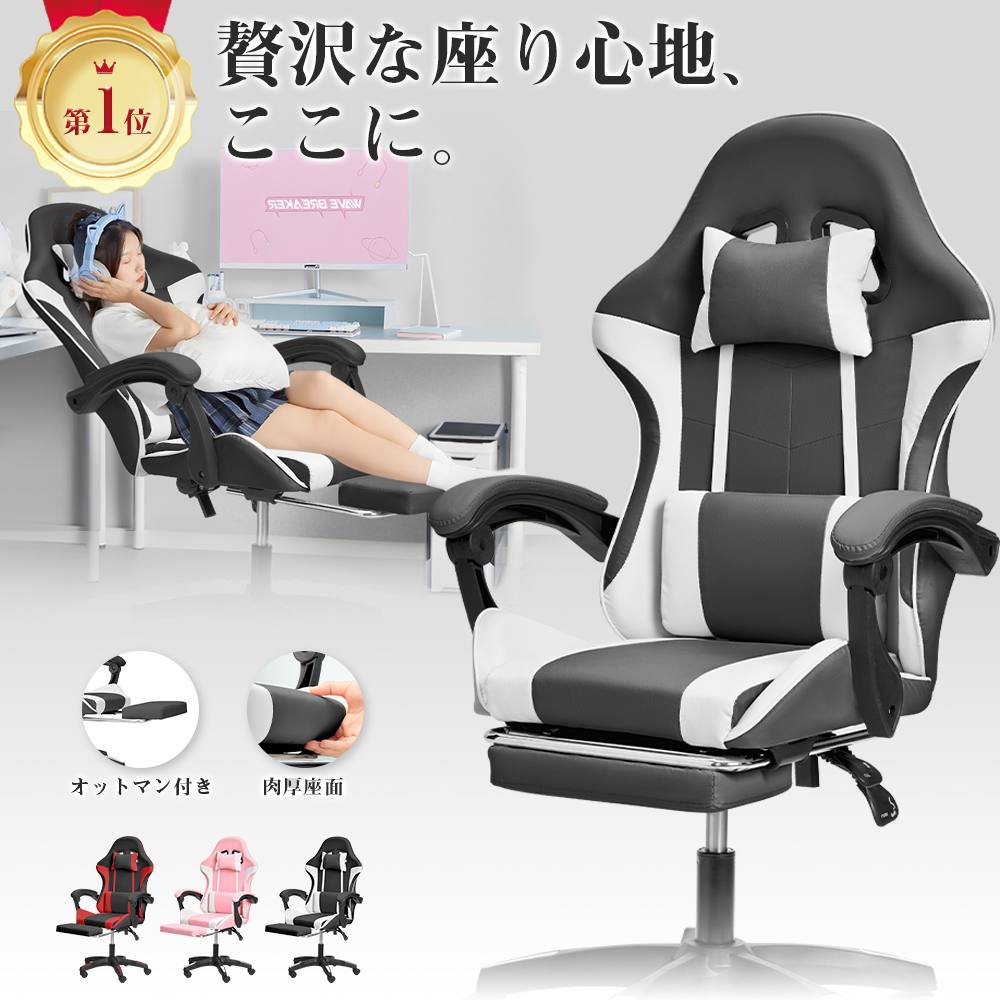 ゲーミングチェア オフィスチェア パソコンチェア デスクチェア PCチェア オットマン付き リクライニング ハイバック ヘッドレスト おすすめ 高さ調整 2年保証
