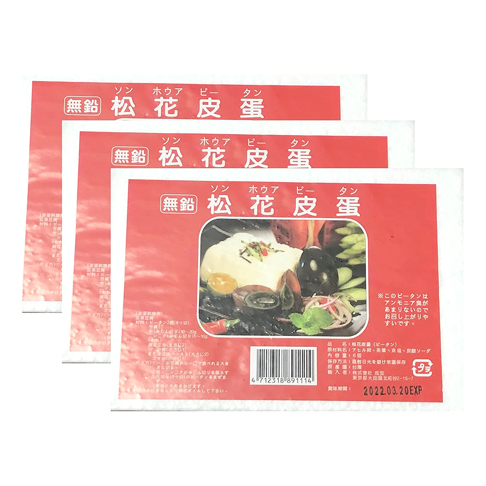 松花 皮蛋 ソンホウア ピータン 本場ピータン 保存食品 発泡スチロール 専用 パック 3点セット 6個入×3