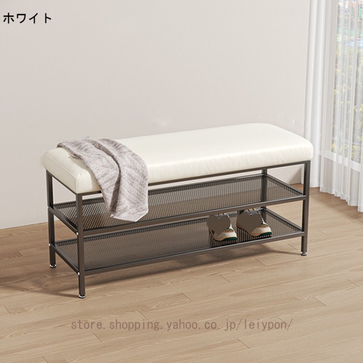 玄関ベンチ シューズラック 収納ベンチ 玄関椅子 玄関収納 3段 座面クッション クッションシート付き 靴履き替え 靴入れ 腰掛け リビングルームスツール