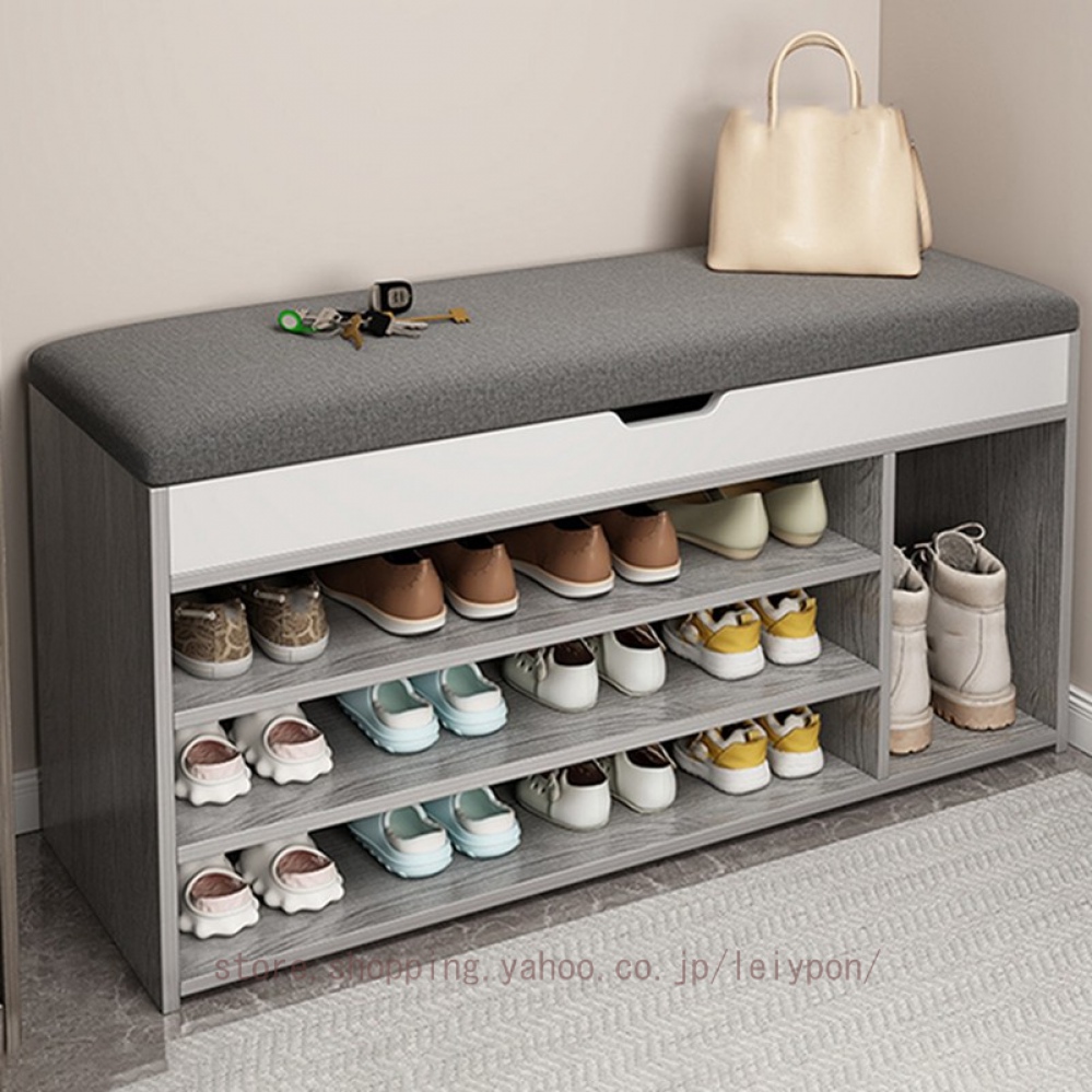 玄関ベンチ 玄関収納ベンチ 下駄箱 3段 フラップ式 履く靴スツール 靴キャビネット シューズラック クッション付き 座れる 靴箱 靴交換 靴入れ 座るスツール