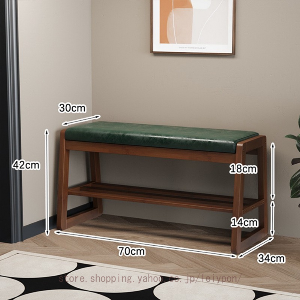 シューズラック 玄関ベンチ 2段 高さ42cm 竹製 座面クッション付き 玄関収納 靴箱 下駄箱 靴収納 エントランスベンチ おしゃれ スツール 椅子 靴棚 コンパクト