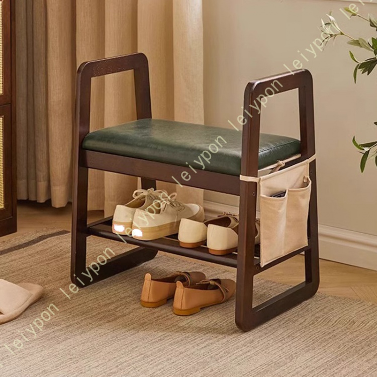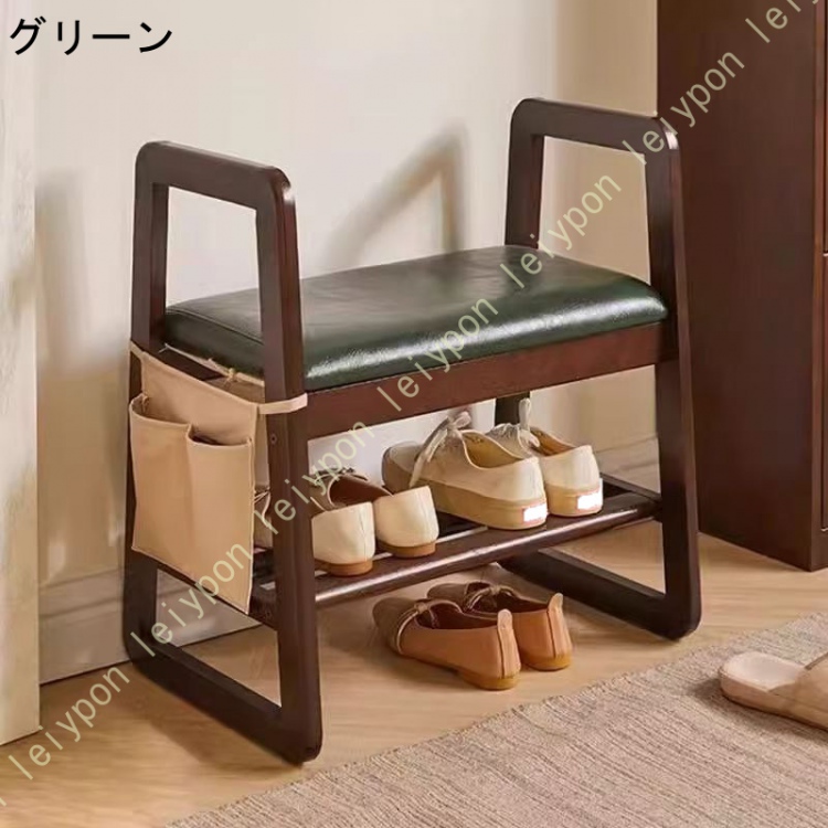 【高齢者に優しい】天然木製玄関チェア 収納付き 安定梯形設計