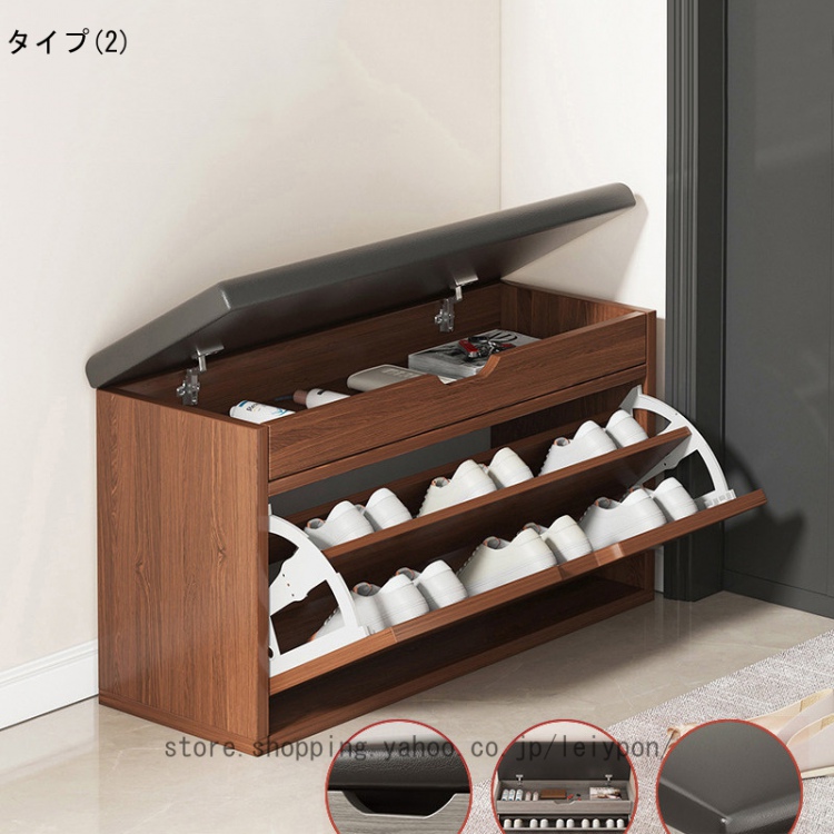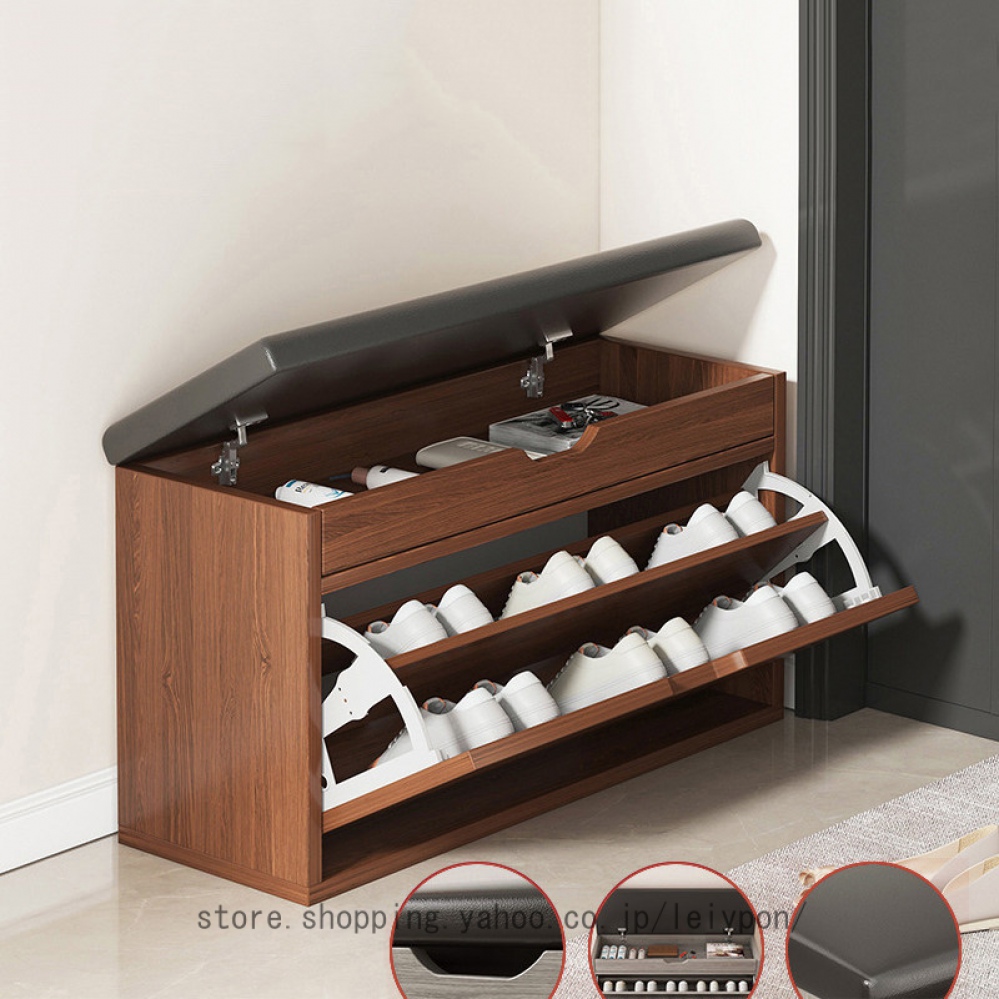 玄関ベンチ 玄関椅子 収納ベンチ 靴箱 2段 フラップ式 下駄箱 玄関スツール シューズラック 靴棚 靴収納 収納スツール クッション付き 腰掛け 省スペース