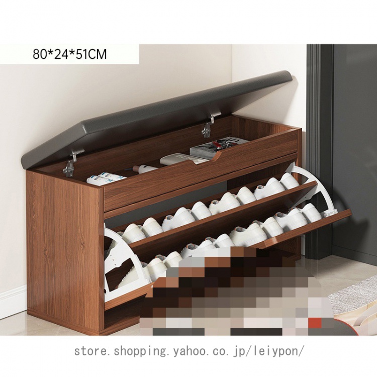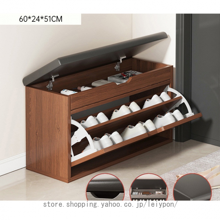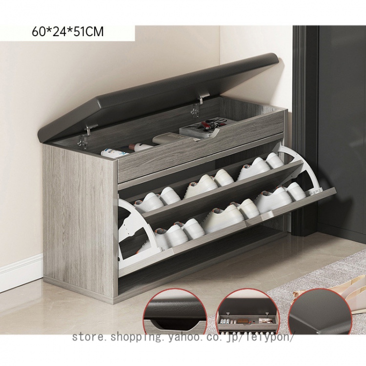 【薄型玄関ベンチ】奥行24cmだけ薄いシューズボックス、狭い玄関の靴収納問題を解決します!フラップ扉のデザインで、外から見えない隠し収納になります!