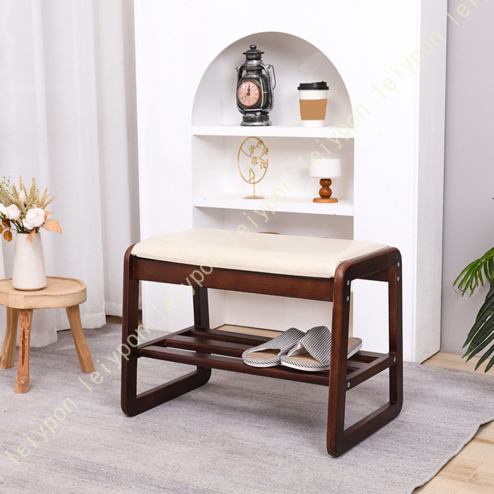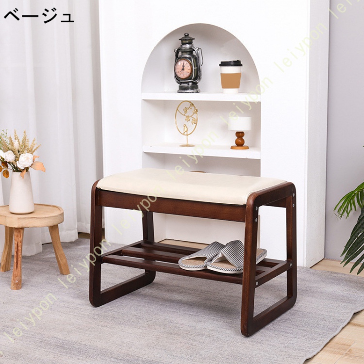 玄関ベンチ 玄関椅子 スリム オシャレ 頑丈 収納ベンチ シューズラック 座面クッション ふかふか 天然木 2段 靴箱 下駄箱 靴入れ 靴交換 チェア スツール