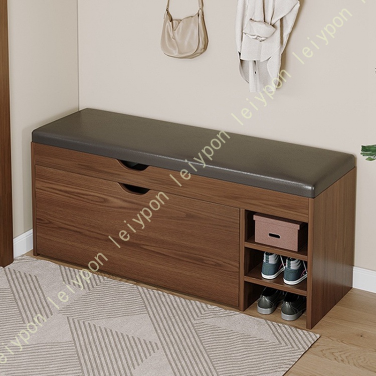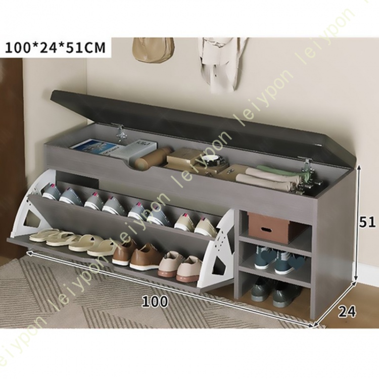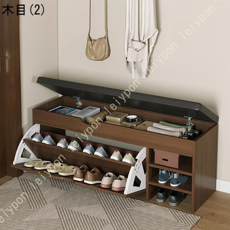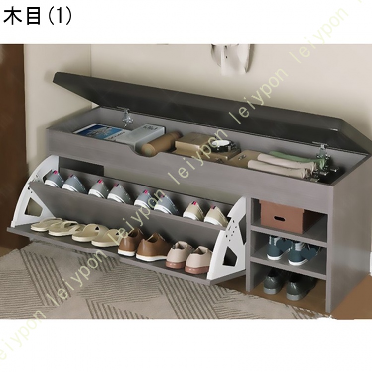 収納ベンチ 玄関ベンチ 玄関スツール フラップ式 扉付き 2段 下駄箱 靴箱 靴入れ シューズラック 靴収納キャビネット 棚板は取り外し可能 簡単組立 大容量