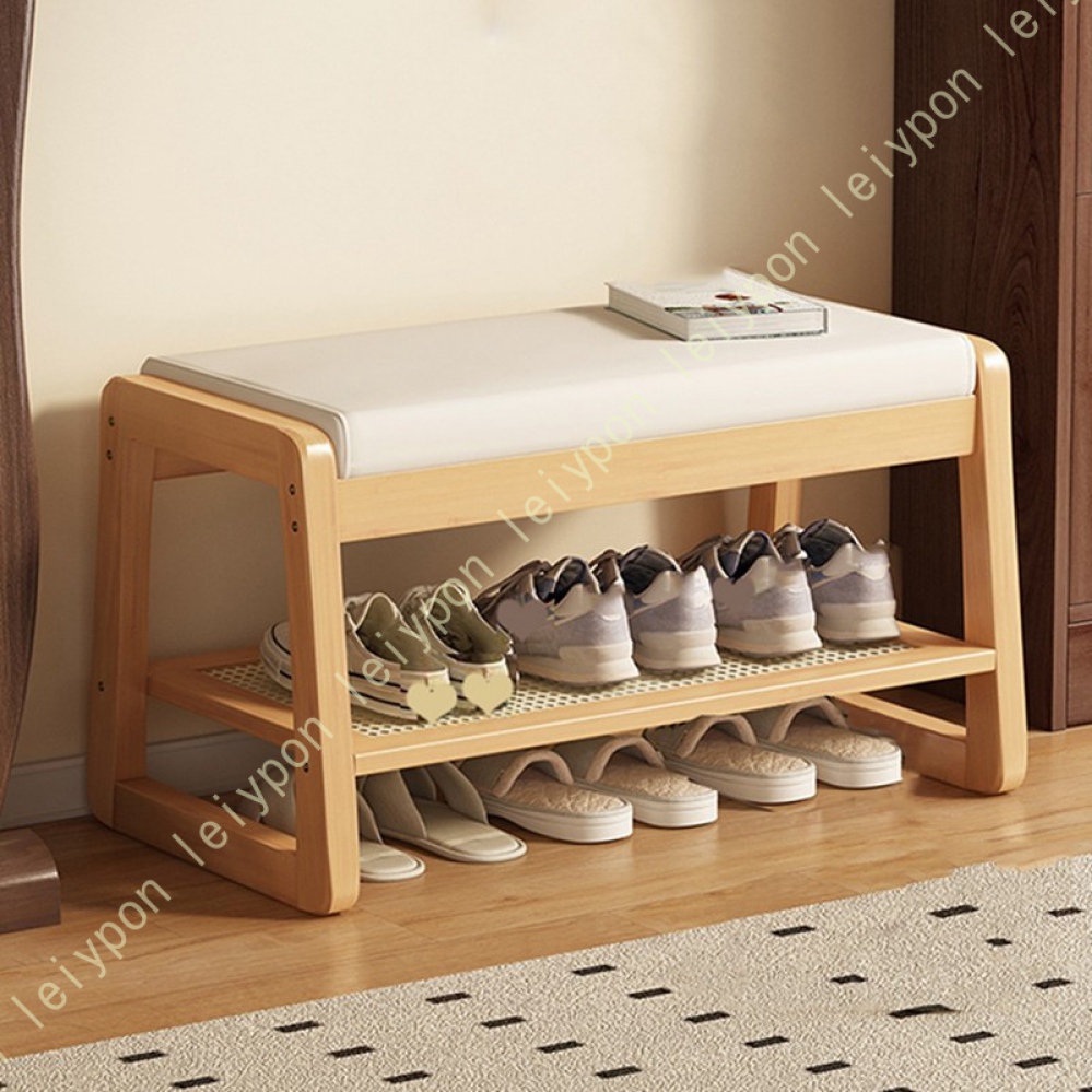 玄関ベンチ 2段式靴収納 シューズラック 収納ベンチ 竹製 玄関椅子 高反発クッション 室内 靴棚 靴入れ 組立簡単 省スペース 下駄箱 靴箱 スリッパラック