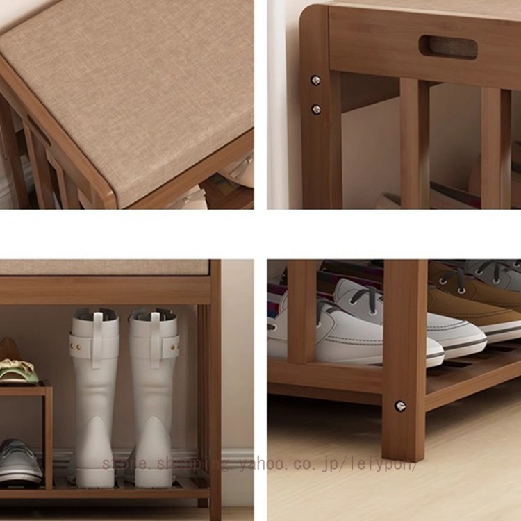 玄関ベンチ 収納ベンチ シューズラック 竹製 2段式 下駄箱 靴箱 玄関椅子 スリム 室内 靴棚 靴入れ スツール 組立簡単 省スペース 靴収納 靴交換