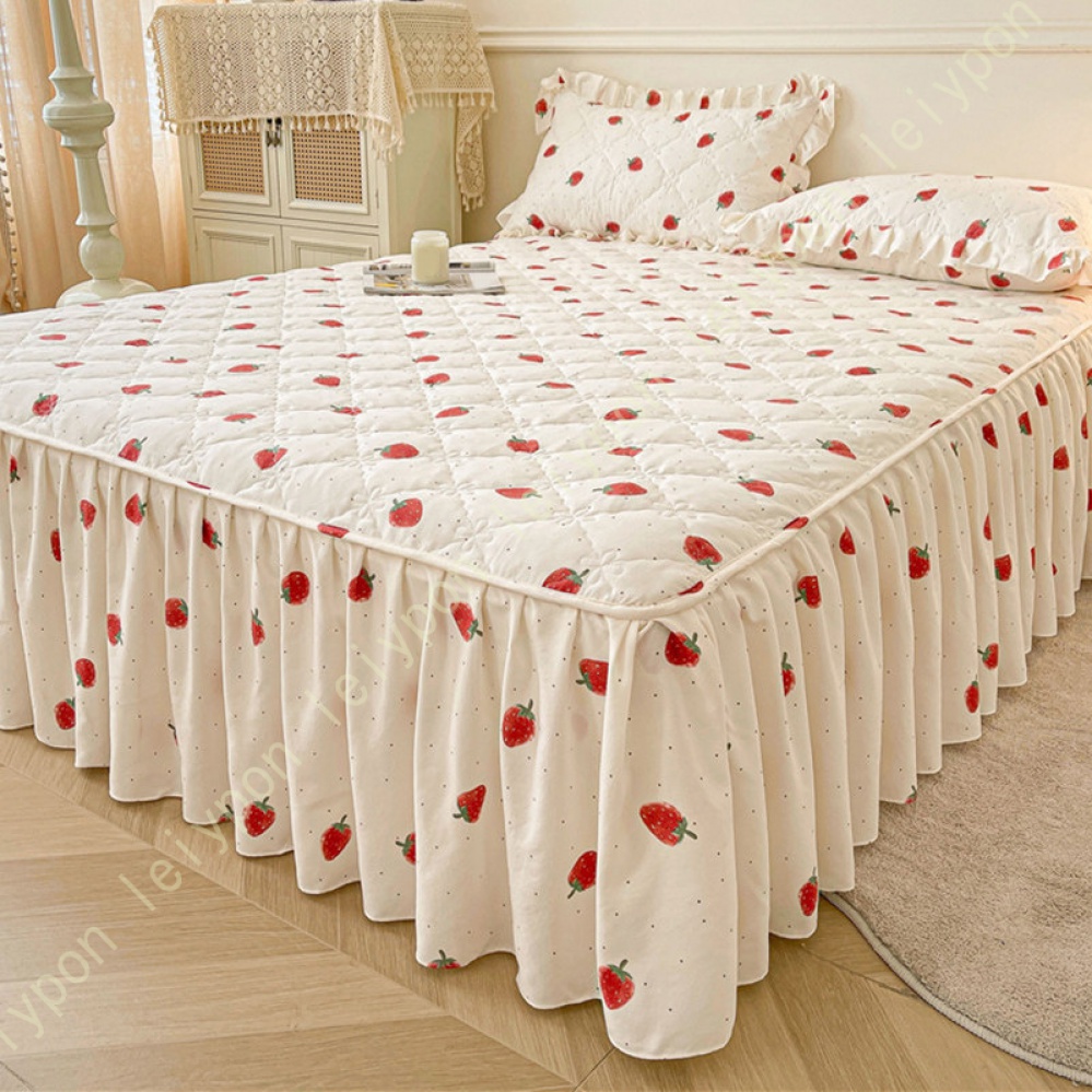 花柄 ベッドスカート ベッドシーツ マットレス敷きカバー 肌に優しい ベッドスプレッド フリル 寝具カバー 敷きシーツ ダブル キング 高通気性 耐久性