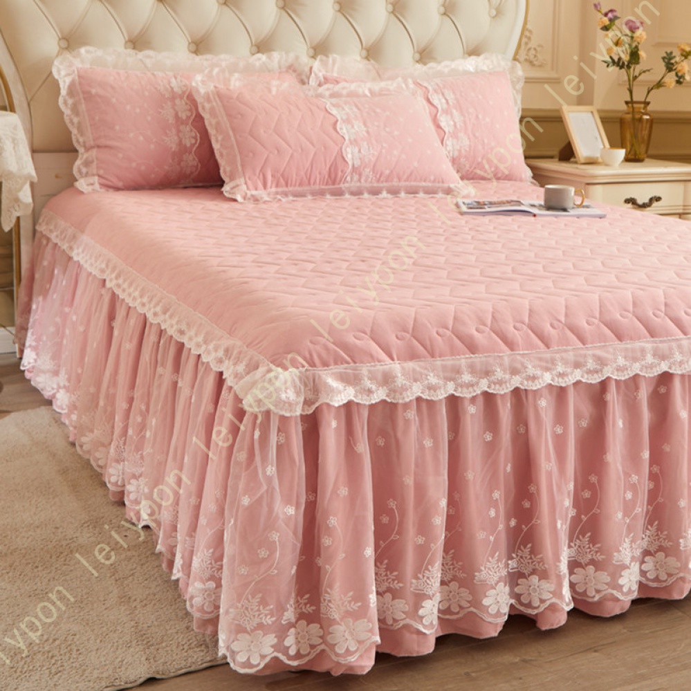 姫系 ベッドスカート 敷き布団カバー レース付き ベッドシーツ シングル セミダブル 中綿入り 柔らか 可愛い マットレスカバー 厚手 フリル付き 優しい 肌触り