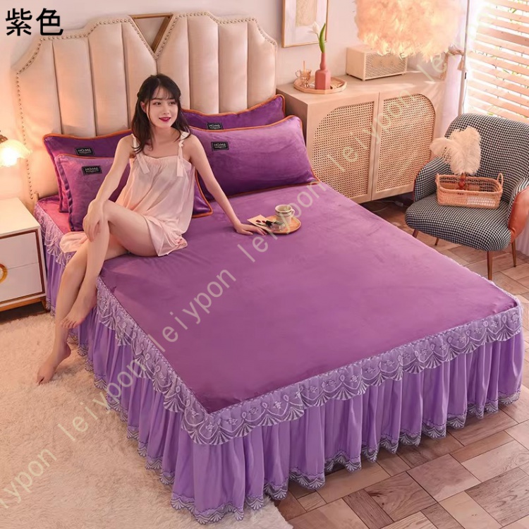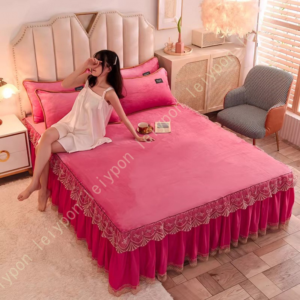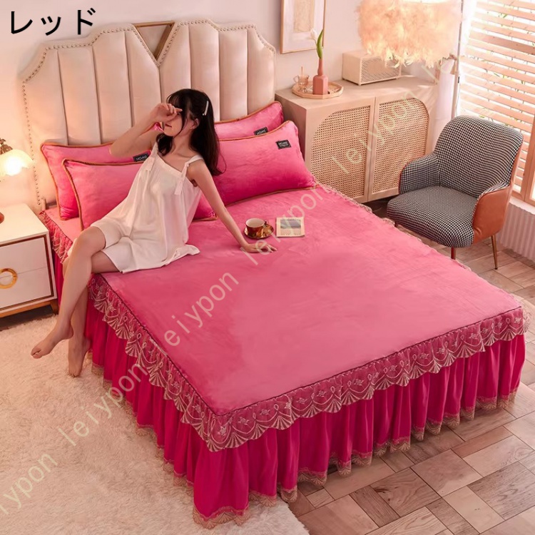 ベッドスカート フランネル セミダブル 厚め ベッドカバー 枕カバー 秋冬 暖かい 保温 レース フリル 姫系 柔らか ダブル クイーン キングマットレスカバー