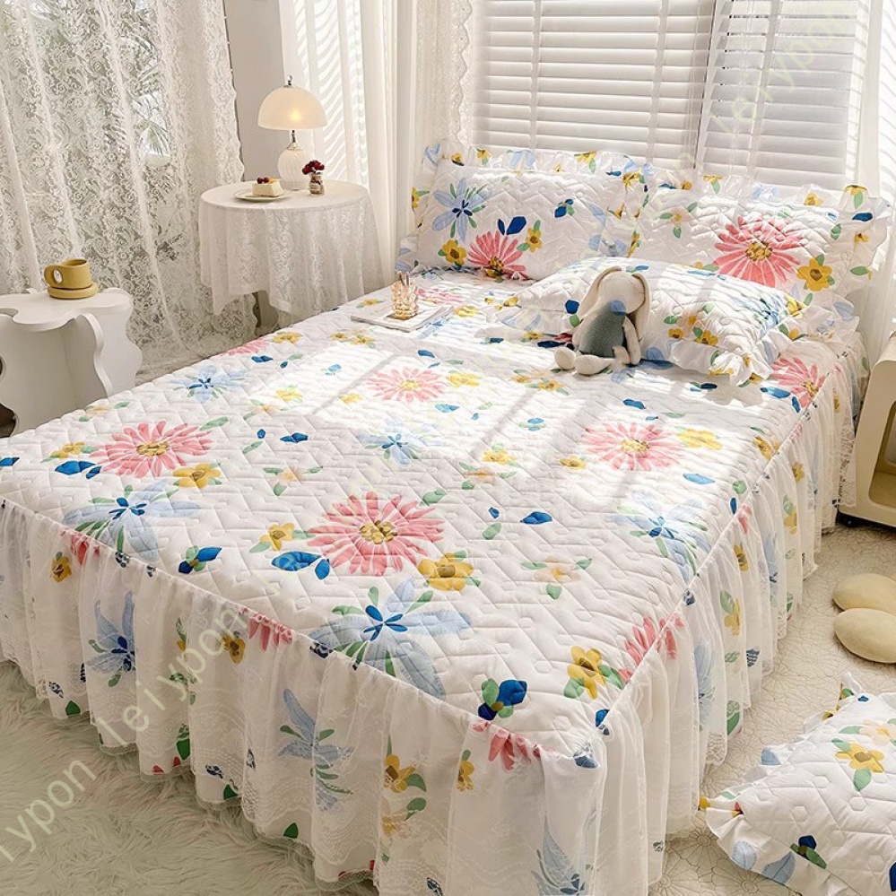 ベッドスカート 中綿ベッドスカート キルティング フリル 姫系 可愛い ベッドカバー セミダブル ダブル ベッドスプレッド 寝室 ホテル 寝具カバー 洗える