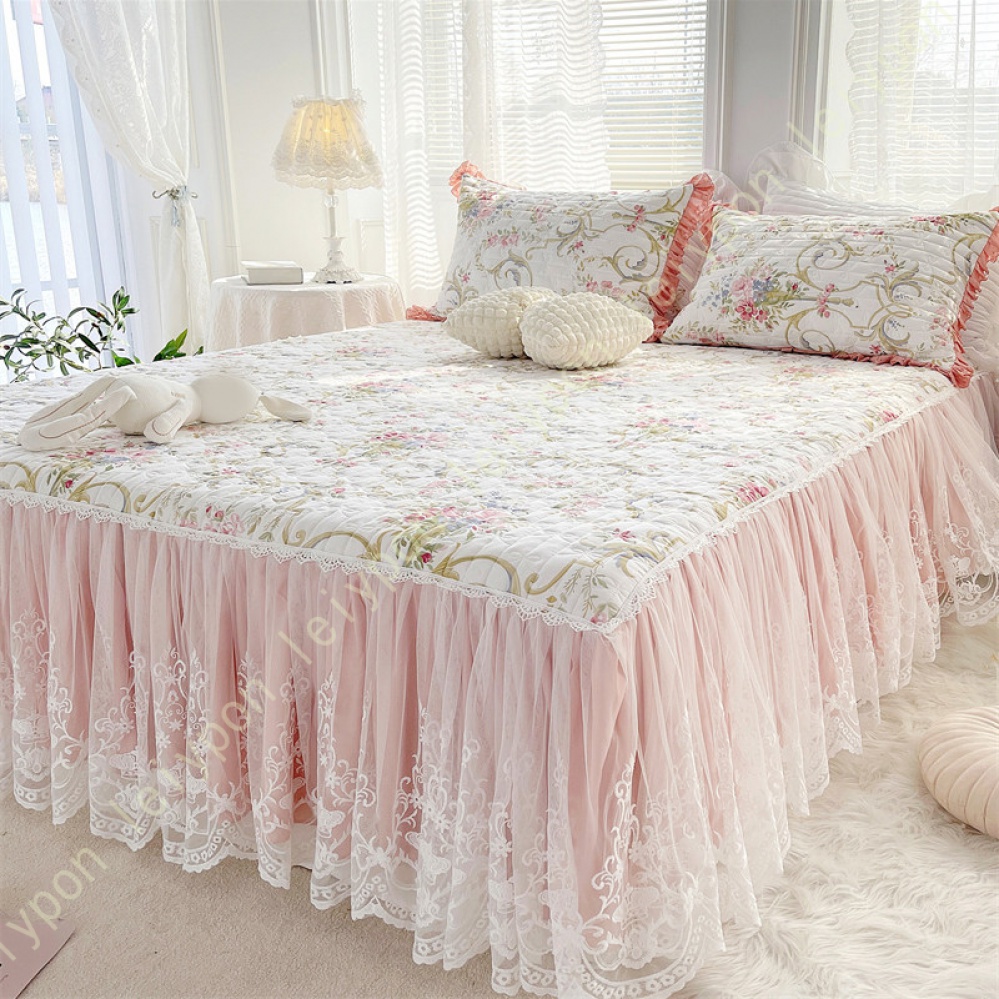 シンプルベッドスカート ダブル シングル マットレスカバー 刺繍 姫系 敷きシーツ 中綿入り キルティング ベッドシーツ 綿100% 肌に優しい 可愛い カワイイ
