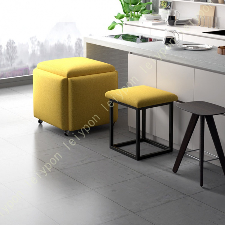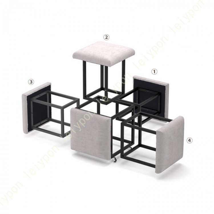 キューブのように組み合わせることで、4脚分のスツールを1つのテーブルにまとめることができるアイデア商品!