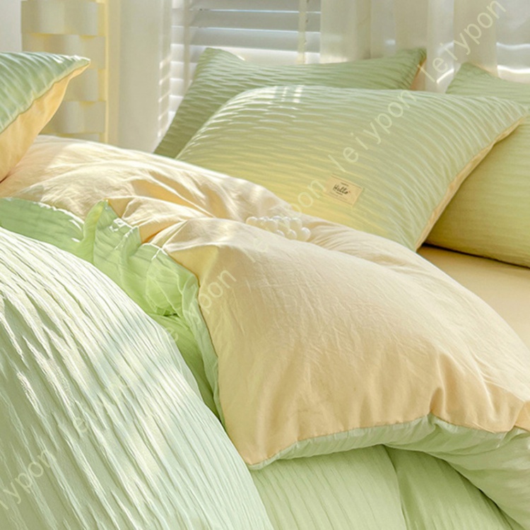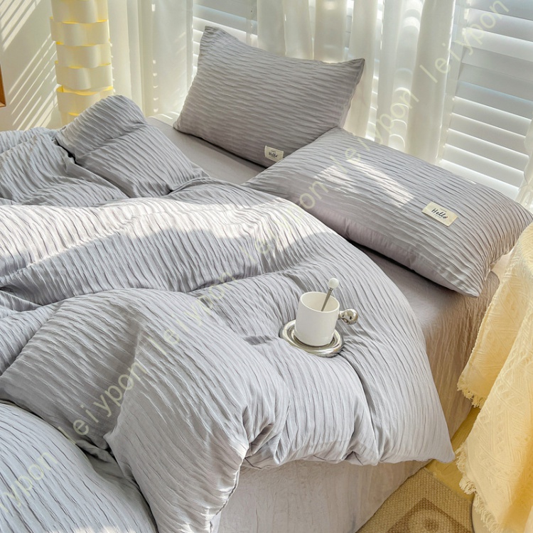 波のような縞ができていてシワになりにくいなどの特徴があります。 ふんわりタッチ柔らかな肌触りで、四季を通じて長くご愛用いただけます。