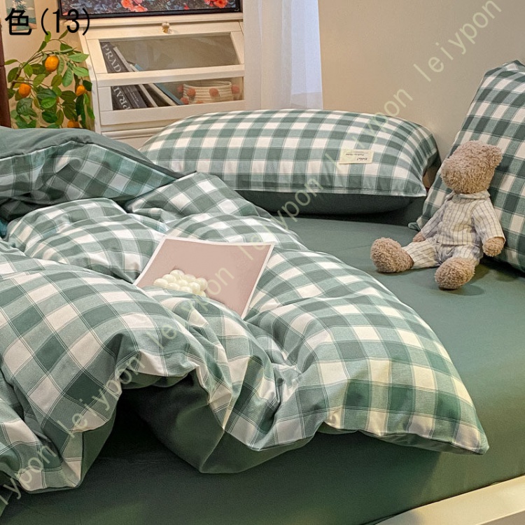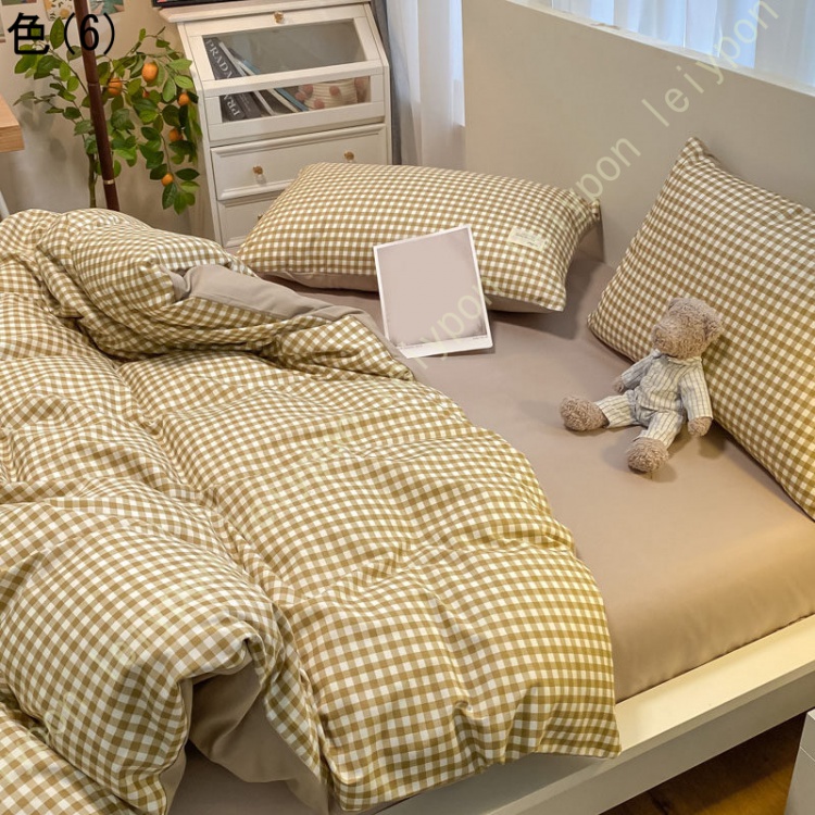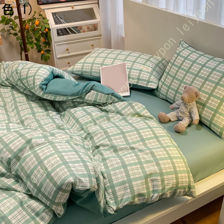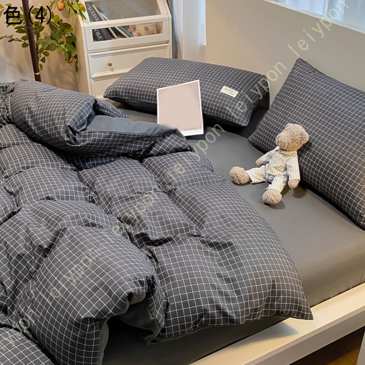 布団カバー 4点セット ダブル 掛け布団カバー チェック柄 洗える おしゃれ 羽毛布団カバー シンプル なめらか ピローケース 敷き布団カバー ふとんカバー
