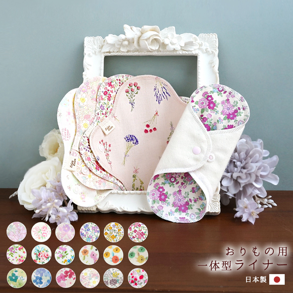 布ナプキン おりもの ライナー おりものシート 合計2,000円(税込)以上で送料無料 おりもの用 一体型 ルランルラン 布ライナー パンティーライナー 生理 お試し 布ナプ 季節柄 ローズ ミュゲ 妊活 温活 日本製 ロハス工房 彩の国優良ブランド品