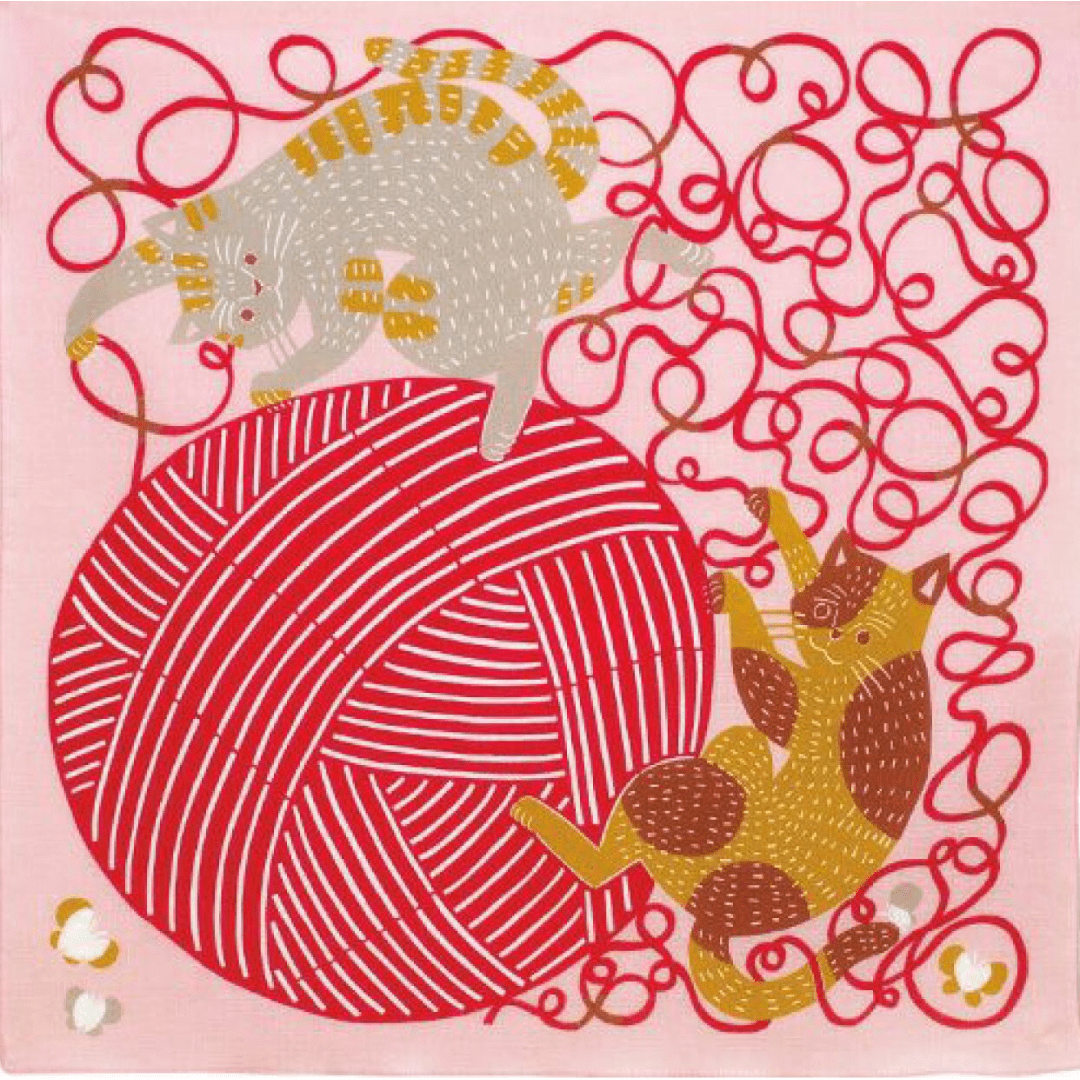 “kata kata Cat and Yarn Pink” is a Japanese-made furoshiki measuring 50 cm × 50 cm.