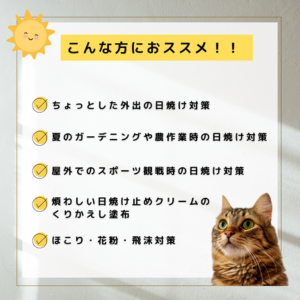 顔全体から首の後ろまでしっかりカバーできる、多機能なUVカットアイテムです。