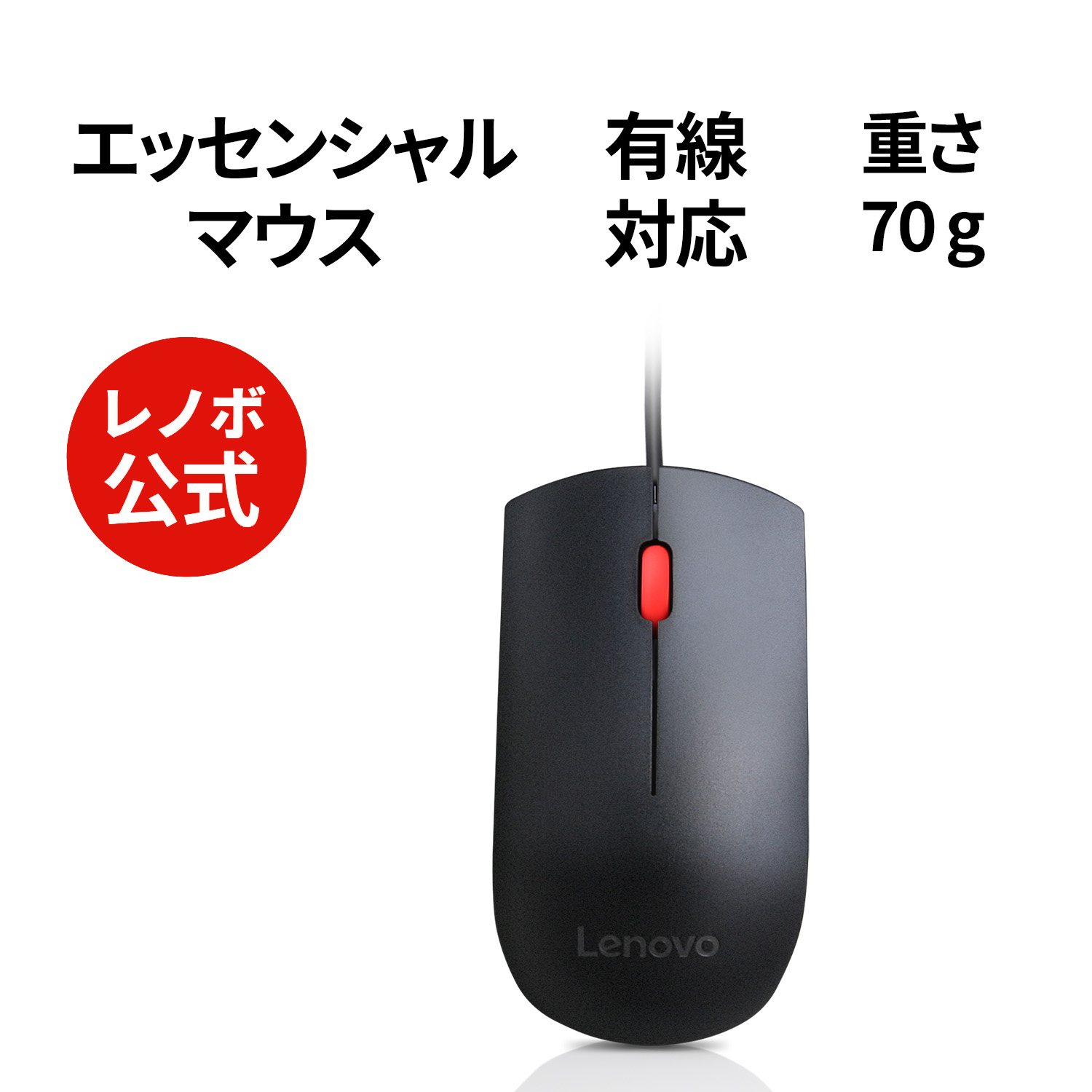 【公式・直販】1000円ポッキリ 純正 レノボ 国内正規品 レノボ公式 新生活 Lenovo USB エッセンシャルマウス 4Y50R20863 有線 両手利き用デザイン