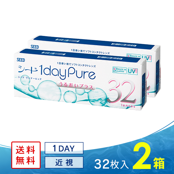 ※表示価格は税込み価格です | 商品名 | ワンデーピュア うるおいプラス 32枚入り | | 度数 | 度あり | | 内容量 | 片眼1ヶ月/1箱32枚入 | | BC(ベースカーブ) | 8.8mm | | DIA(レンズ直径) | 14.2mm | | 中心厚(-3.00の場合) | 0.07mm | | 含水率 | 58% | | UVカット | あり | | 医療機器承認番号 | 22100BZX00759000 | 使い捨てコンタクトレンズご購入に関する遵守事項 - コンタクトレンズは高度管理医療機器です。取り扱い方法を守り正しくご使用下さい。