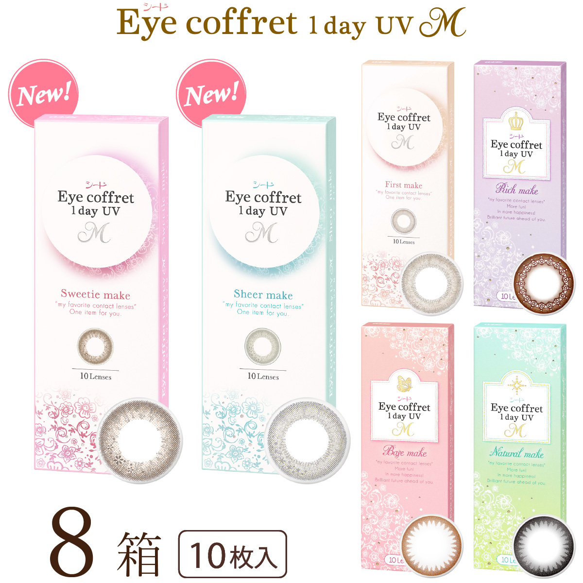 10枚入りx8箱 / シード / 1DAY / UVカット / 1日使い捨てコンタクトレンズ / リッチメイク (ブラウン) / ベースメイク (ライトブラウン) / ナチュラルメイク (ブラック) / ファーストメイク (ブラウン) / スウィーティーメイク (ブラウン) / シアーメイク (グレー) / 度あり / 度なし / カラコン / カラー / サークル / 北川景子 / 福原遥 / メール便