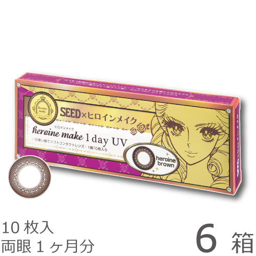 10枚入りx6箱 / 両眼1ヶ月分 / シード / 伊勢半 / 1DAY / UVカット / 1日使い捨てコンタクトレンズ / ヒロインブラウン / 度あり / 度なし / カラコン / カラー / サークル / 天まで届けマスカラ / メール便