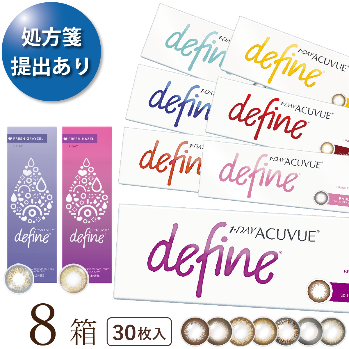 30枚入りx8箱 / 両眼4ヶ月分 / ジョンソン・エンド・ジョンソン / 1DAY / UVカット / うるおい成分 / 1日使い捨てコンタクトレンズ / アクセントスタイル (ブラック) / ヴィヴィッドスタイル (ブラウン) / ナチュラルシャイン (2トーン) / ラディアントチャーム (3トーンブラック) / ラディアントブライト (3トーンブラウン) / ラディアントスウィート (3トーンブラウン) / ラディアントシック (3トーンブラウン) / フレッシュグレーゼル / フレッシュヘーゼル / ラディアントスイート / 度あり / 度なし / カラコン / カラー / サークル / ワンデイアキュビューディファイン / ワンデー / アキュビュー / ディファイン / ディファインモイスト / ワンデーアキュビュー / 1-DAY ACUVUE DEFINE MOIST
