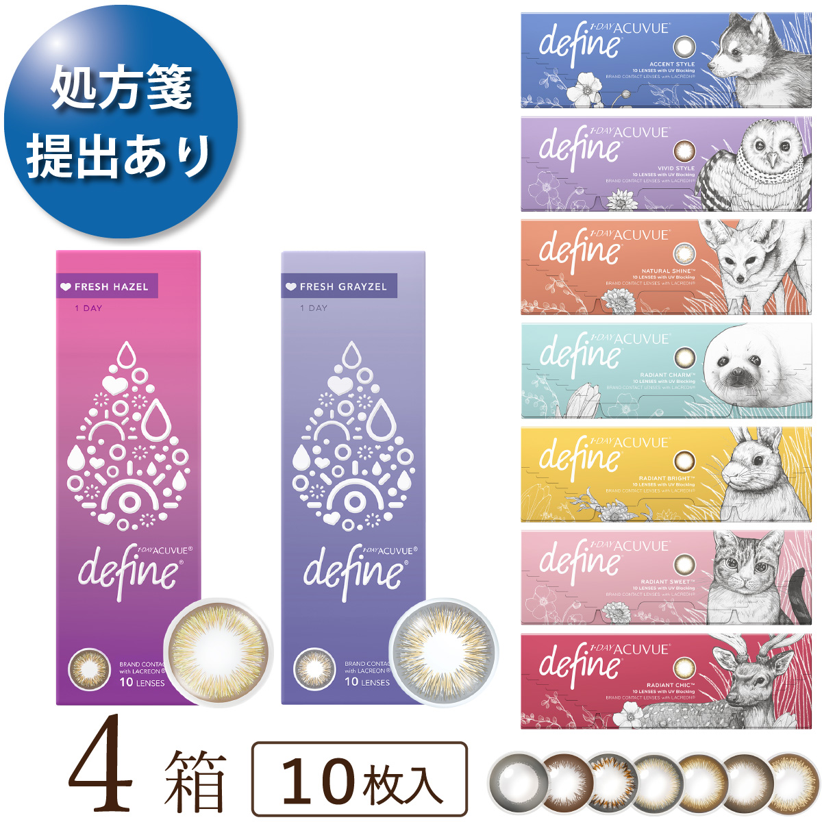 10枚入りx4箱 / 両眼20日分 / ジョンソン・エンド・ジョンソン / 1DAY / UVカット / うるおい成分 / 1日使い捨てコンタクトレンズ / アクセントスタイル (ブラック) / ヴィヴィッドスタイル (ブラウン) / ナチュラルシャイン (2トーン) / ラディアントチャーム (3トーンブラック) / ラディアントブライト (3トーンブラウン) / ラディアントスウィート (3トーンブラウン) / ラディアントシック (3トーンブラウン) / フレッシュグレーゼル / フレッシュヘーゼル / ラディアントスイート / 度あり / 度なし / カラコン / カラー / サークル / ワンデイアキュビューディファイン / ワンデー / アキュビュー / ディファイン / ディファインモイスト / ワンデーアキュビュー / 30枚パックならさらにお得! / 1-DAY ACUVUE DEFINE MOIST