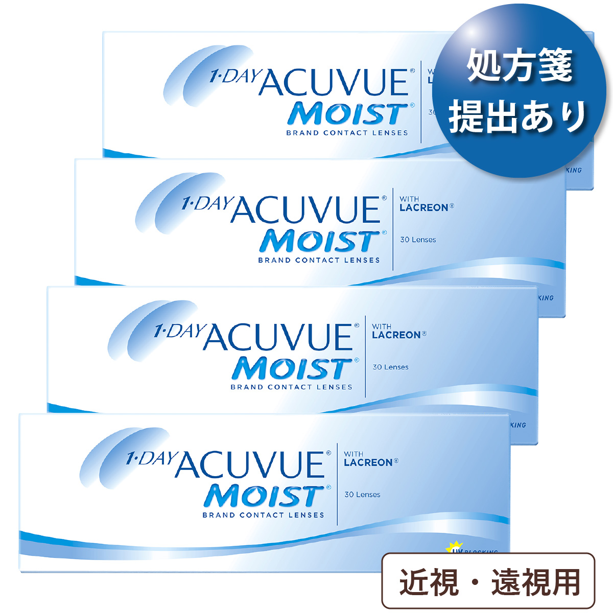 30枚入りx4箱 / 両眼2ヶ月分 / ジョンソン・エンド・ジョンソン / 1DAY / UVカット / うるおい成分 / 1日使い捨てコンタクトレンズ / メール便 / 1-DAY ACUVUE MOIST WITH LACREON