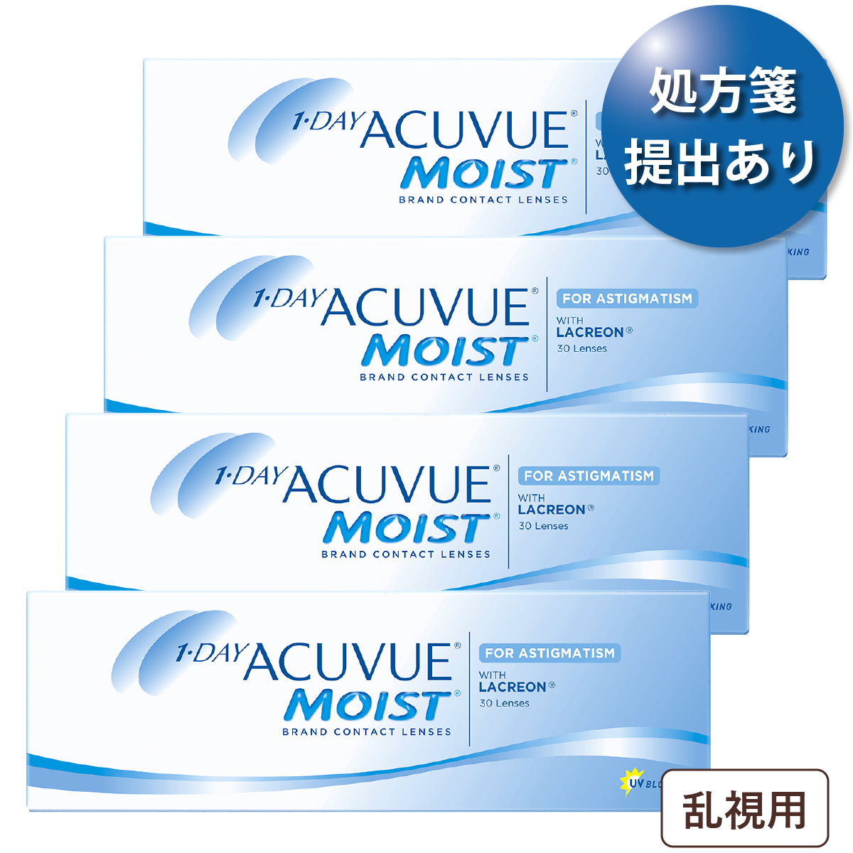 30枚入りx4箱 / 両眼2ヶ月分 / ジョンソン・エンド・ジョンソン / 1DAY / UVカット / うるおい成分 / 乱視用 / トーリック / 1日使い捨てコンタクトレンズ / 1-DAY ACUVUE MOIST for ASTIGMATISM WITH LACREON